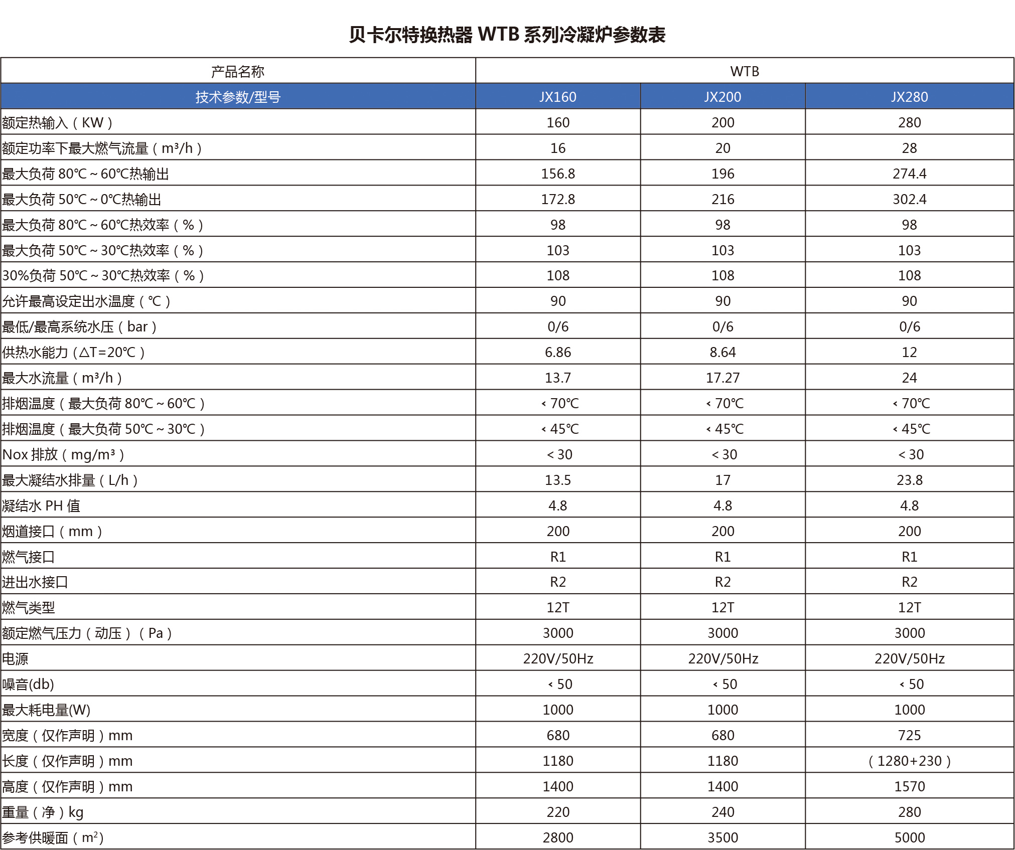 ?采用原裝進口配件,性能優越 ?全預混冷凝技術,空燃比更合理 ?采用貝卡爾特硅鎂鋁合金熱交換器,傳熱 效率高,耐腐蝕性強 ?功率160Kw~280Kw ?供暖面積2800~5000m2 ?熱效率109% ?節能、高效,比一般鍋爐節能約35%以上 ?環保,Nox排放(綜合平均值)在30mg/m3以下 ?微電腦智能控制,操作便捷